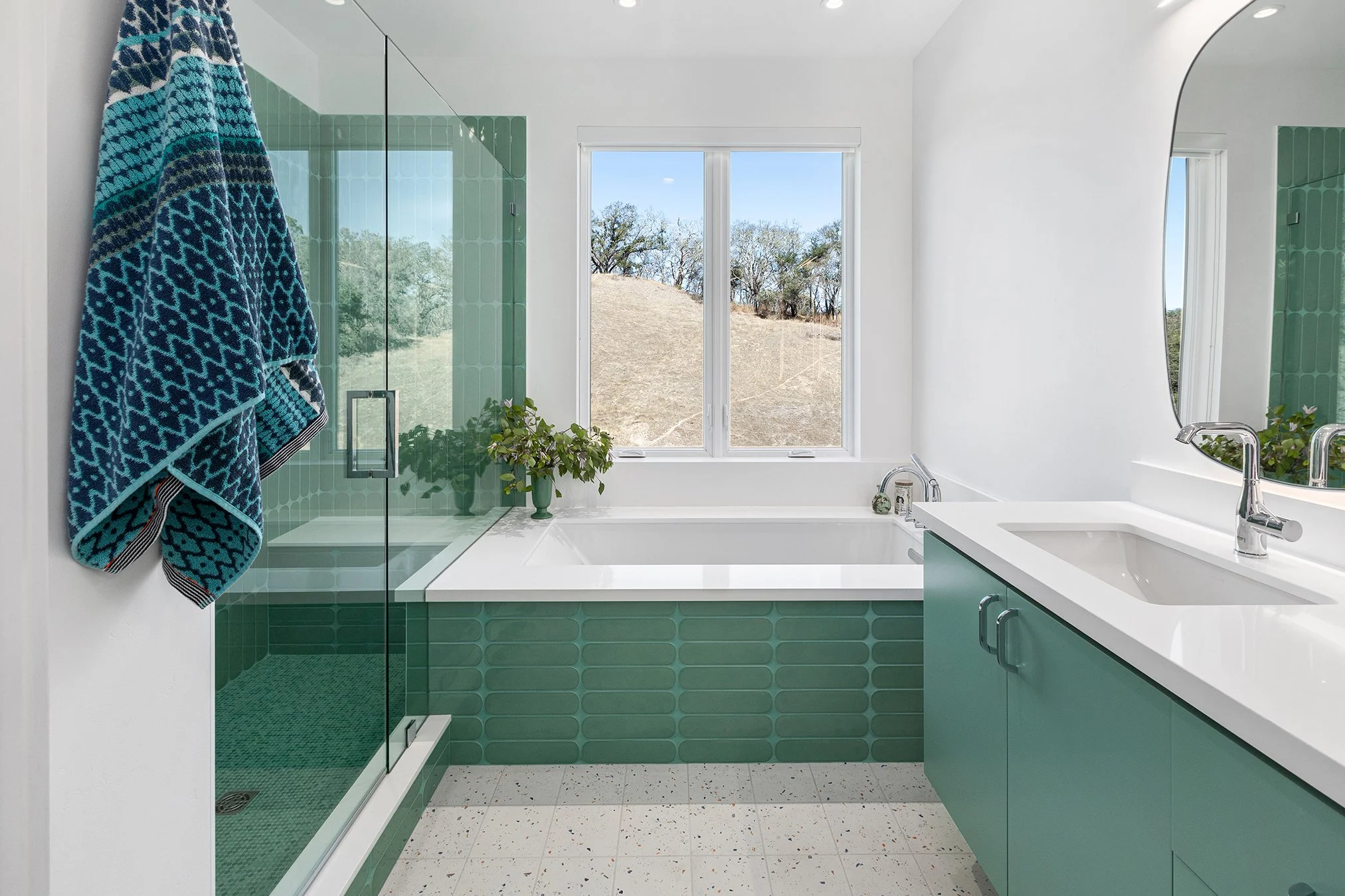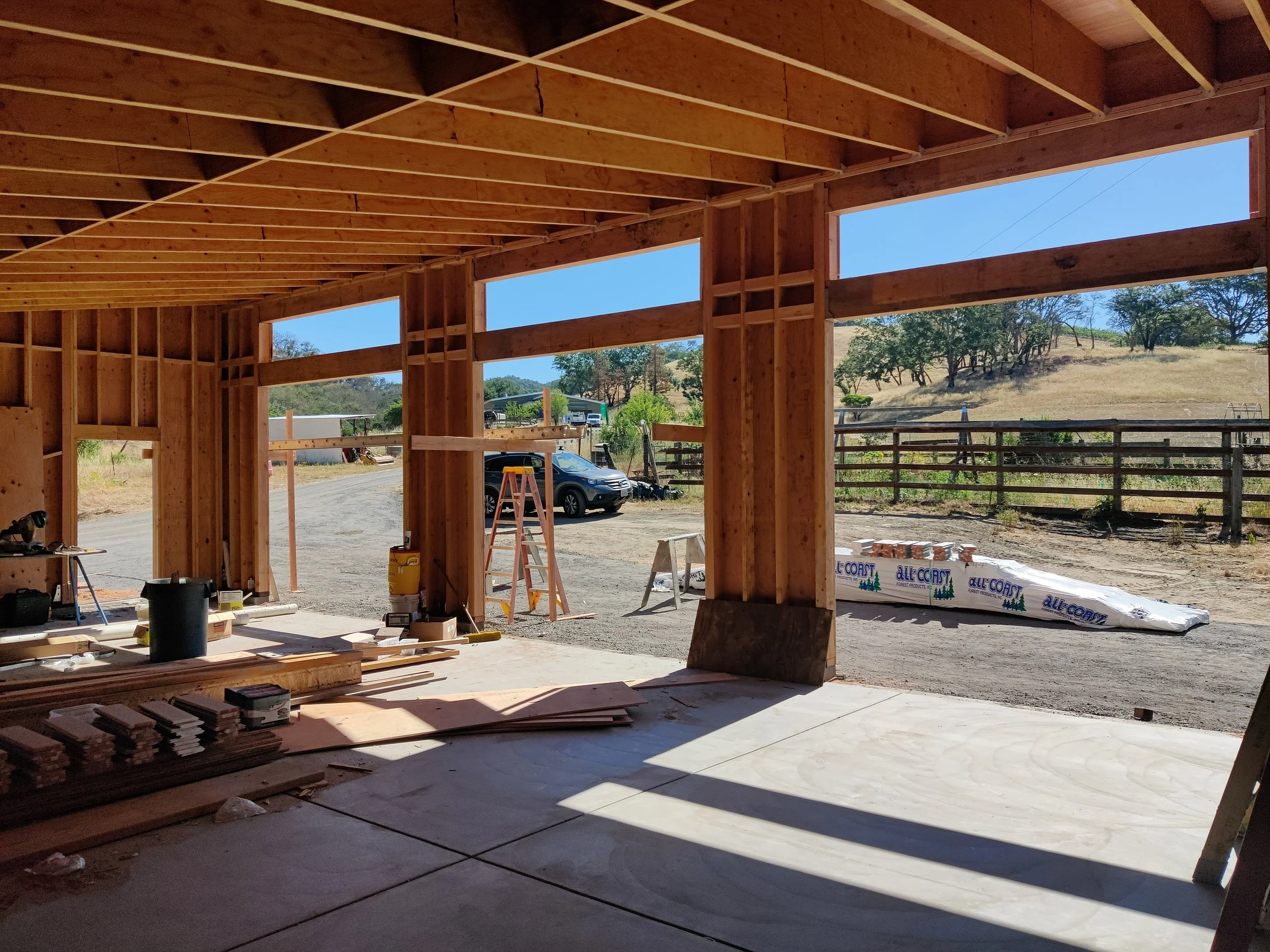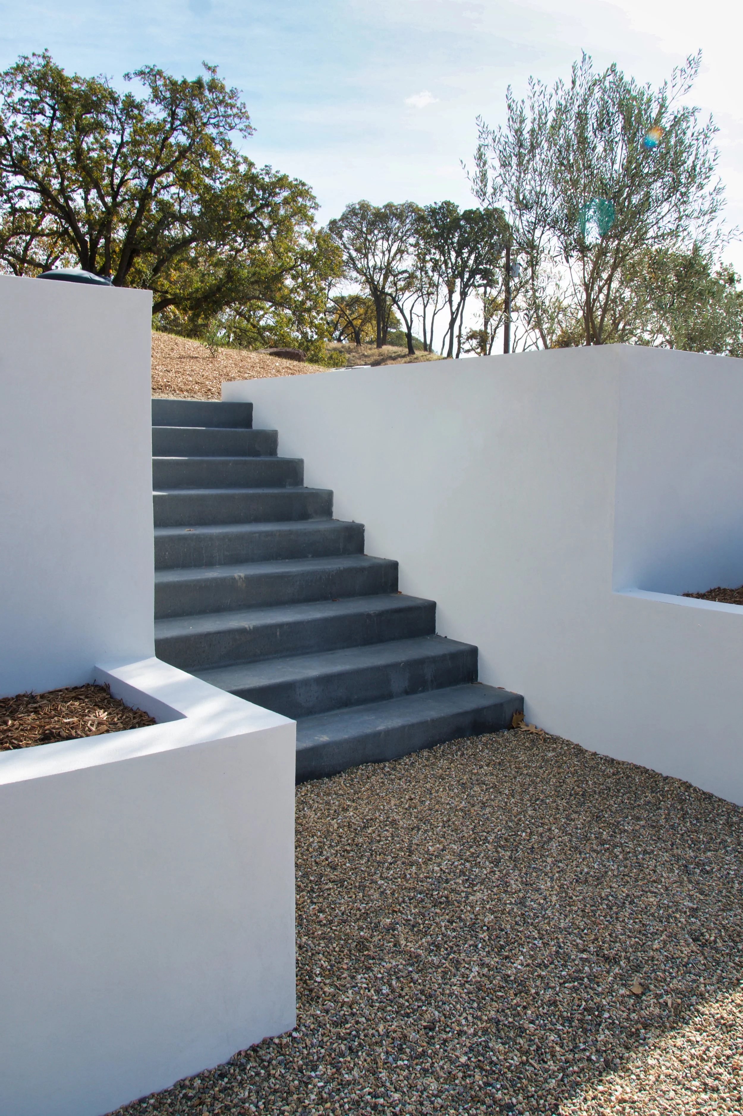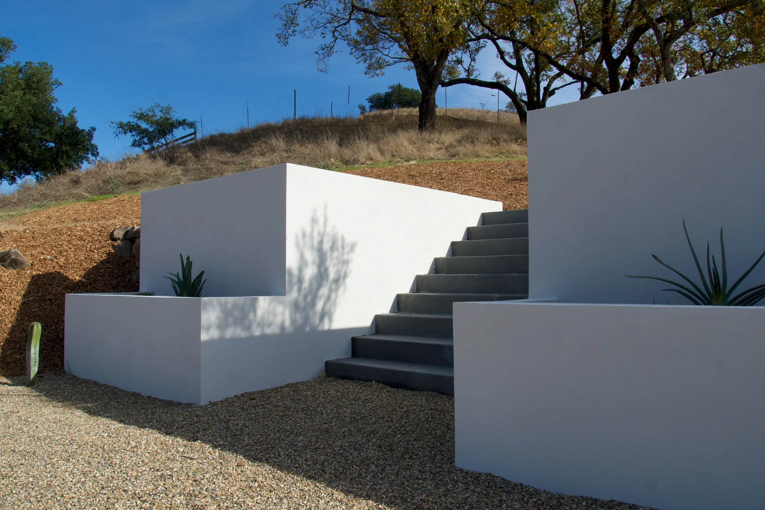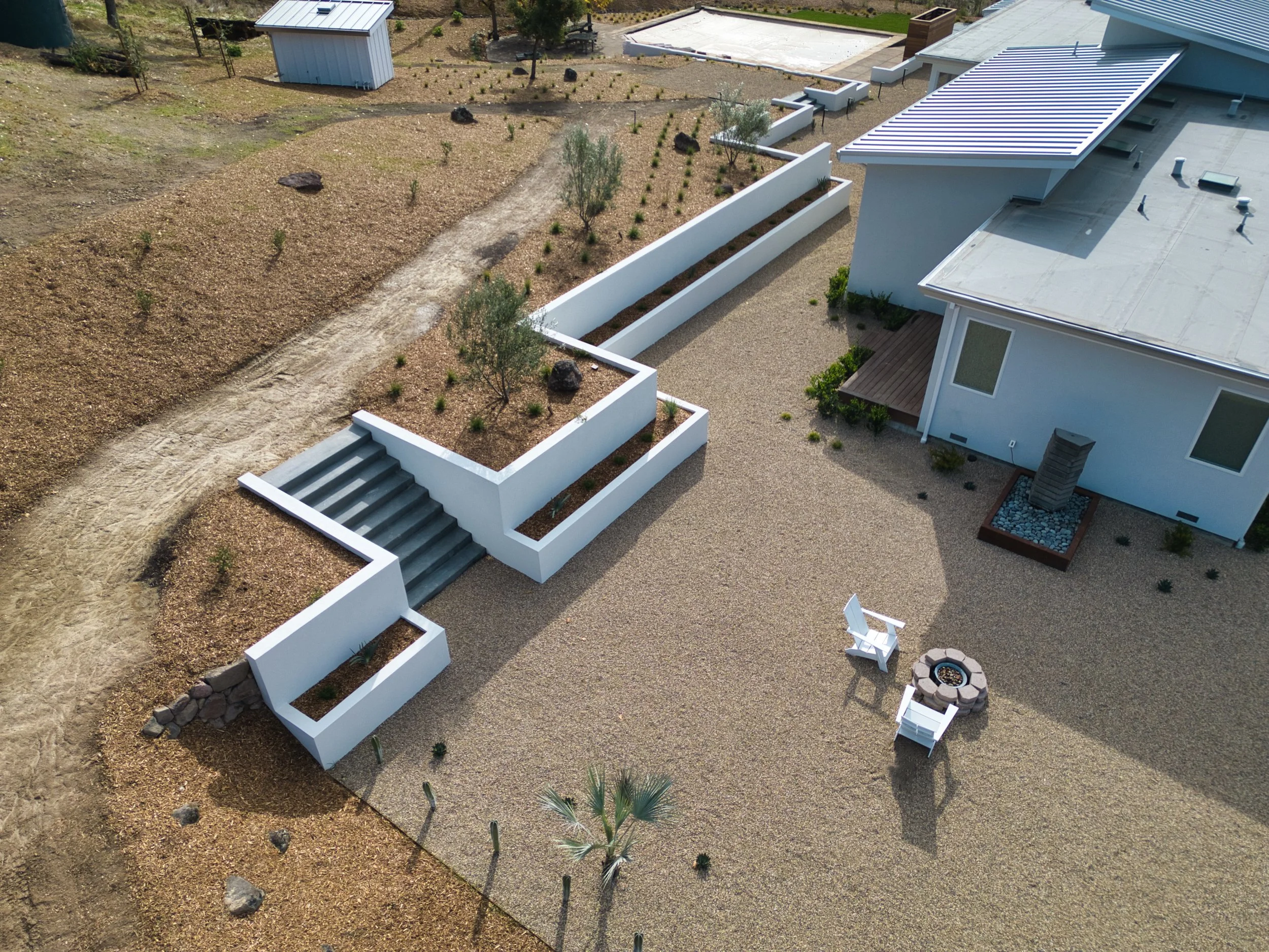 The Golden Valley residence is a wildfire rebuild project tastefully designed to embrace its country setting. Highlights include a compact structural design, and east-facing clerestory windows running the entire length of the living, dining, and kitchen areas.
