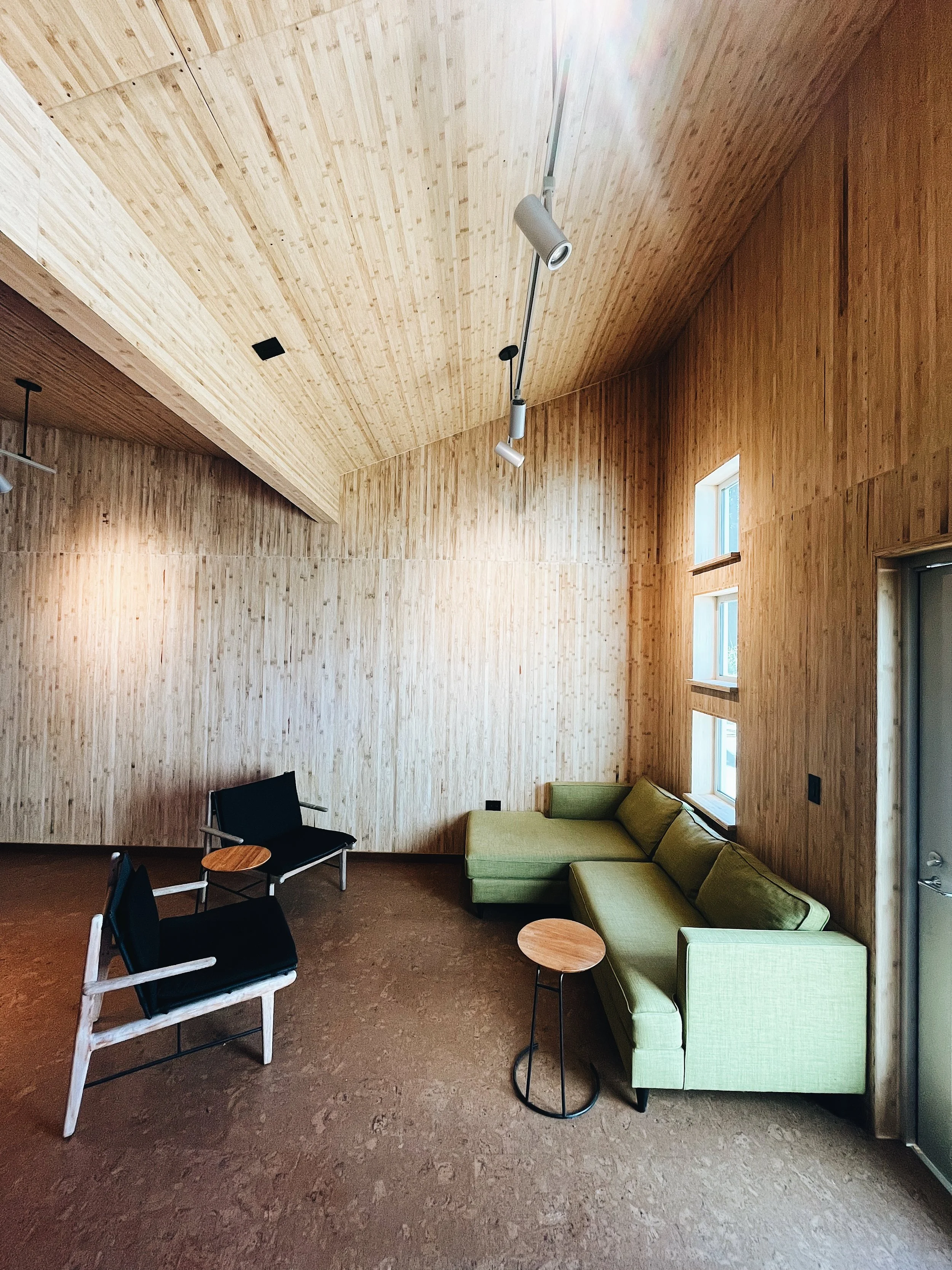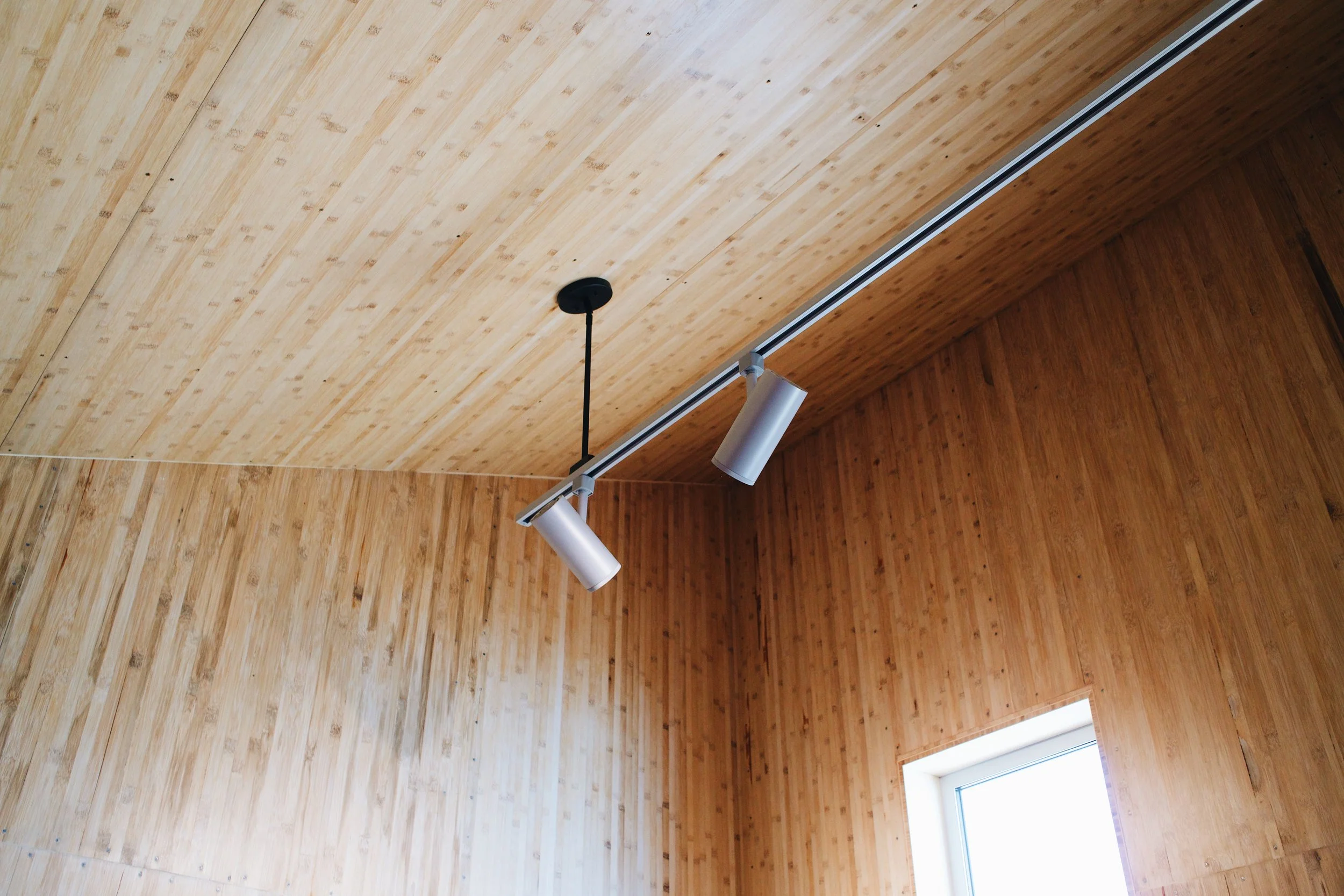 BamCore Prime Wall panels are used to finish the interior of the studio as well. The panels are environmentally friendly and custom fabricated for each job.