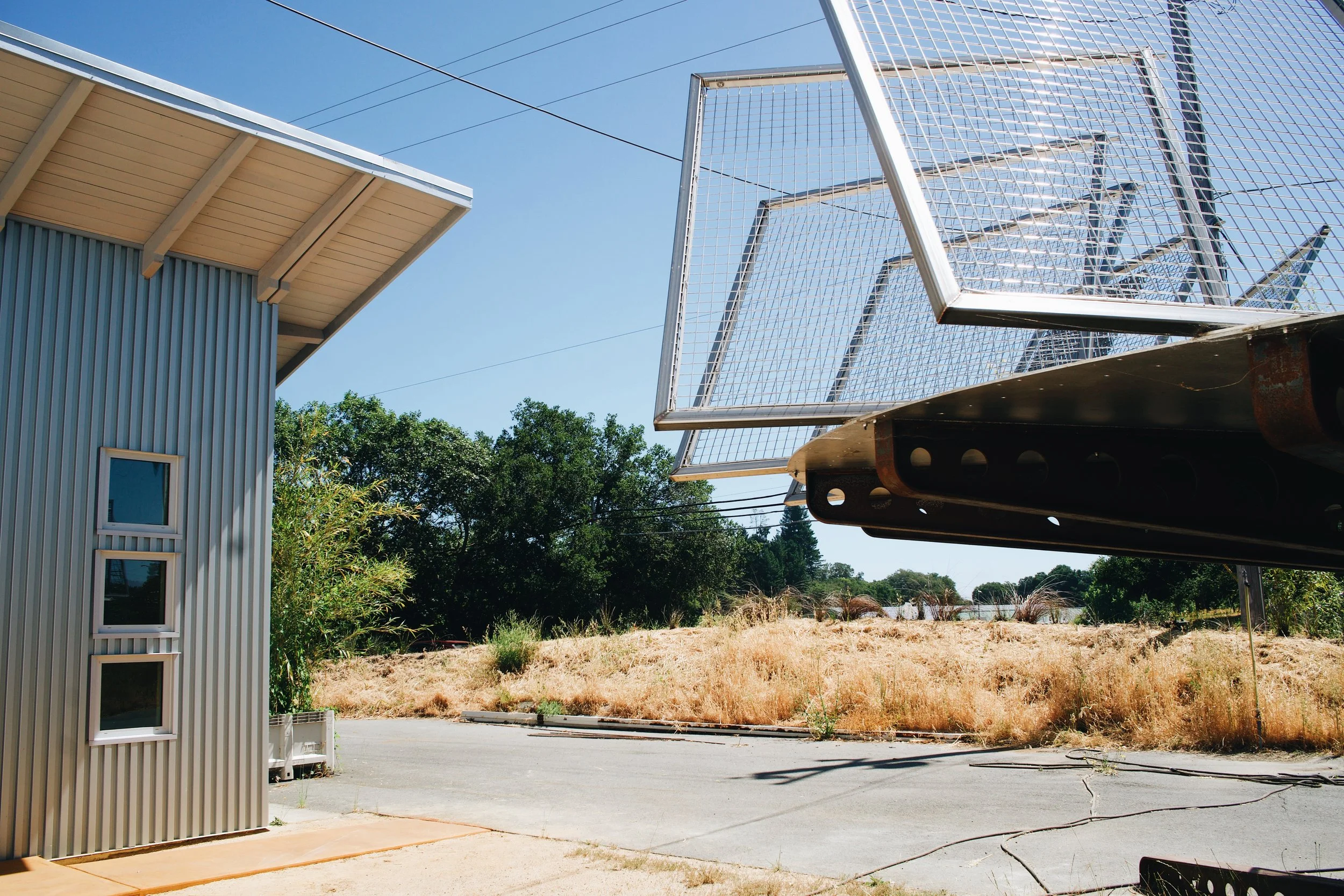 This project utilizes the BamCore Prime Wall System, a zero carbon footprint building material, to create an office extension to artist Ned Kahns’ creative warehouse. The material covers the studio space, creating a seamless design that feels expansive and secure.