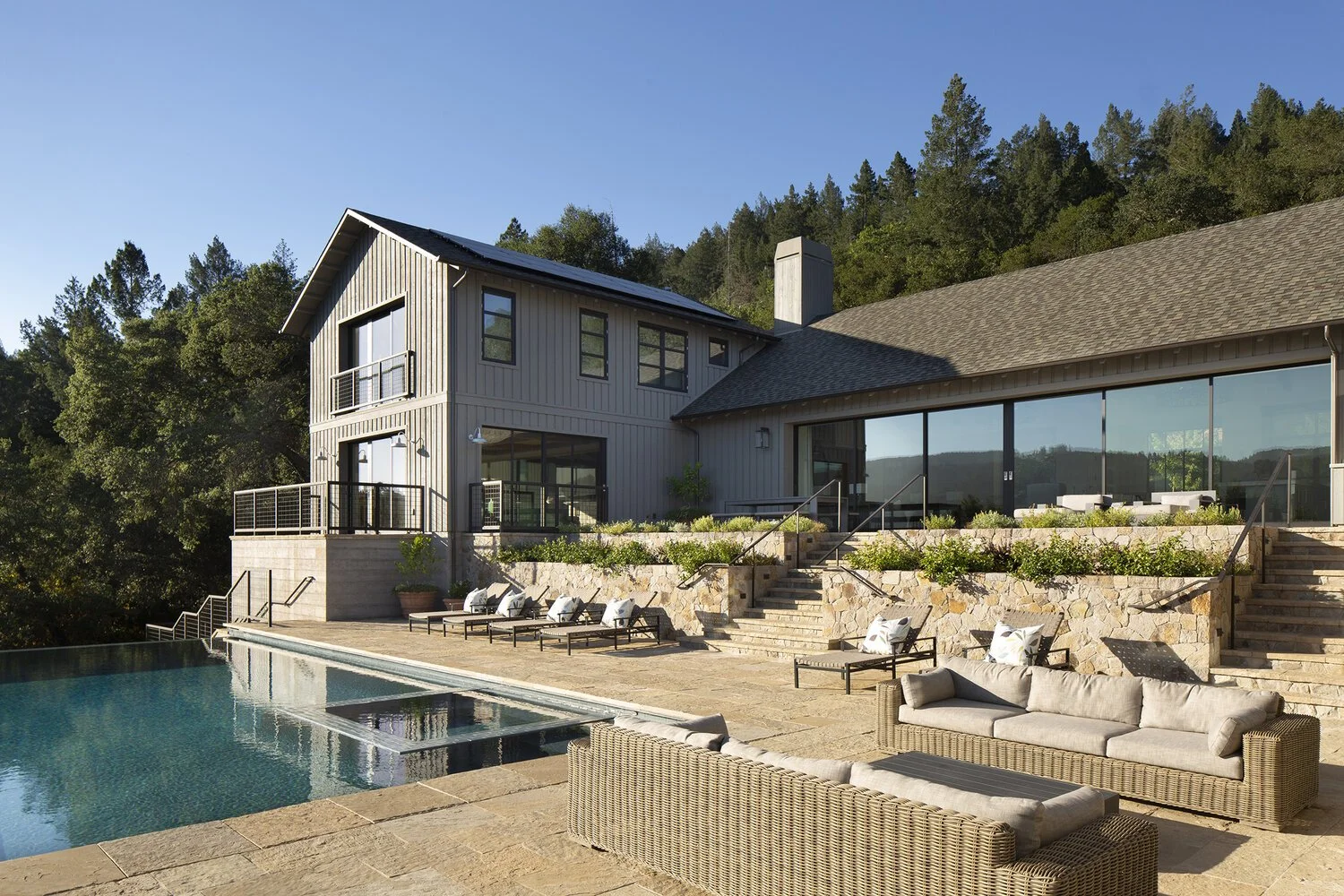 This 7,500 square-foot private residence features a retractable, 36-foot-long pocket door and infinity pool.